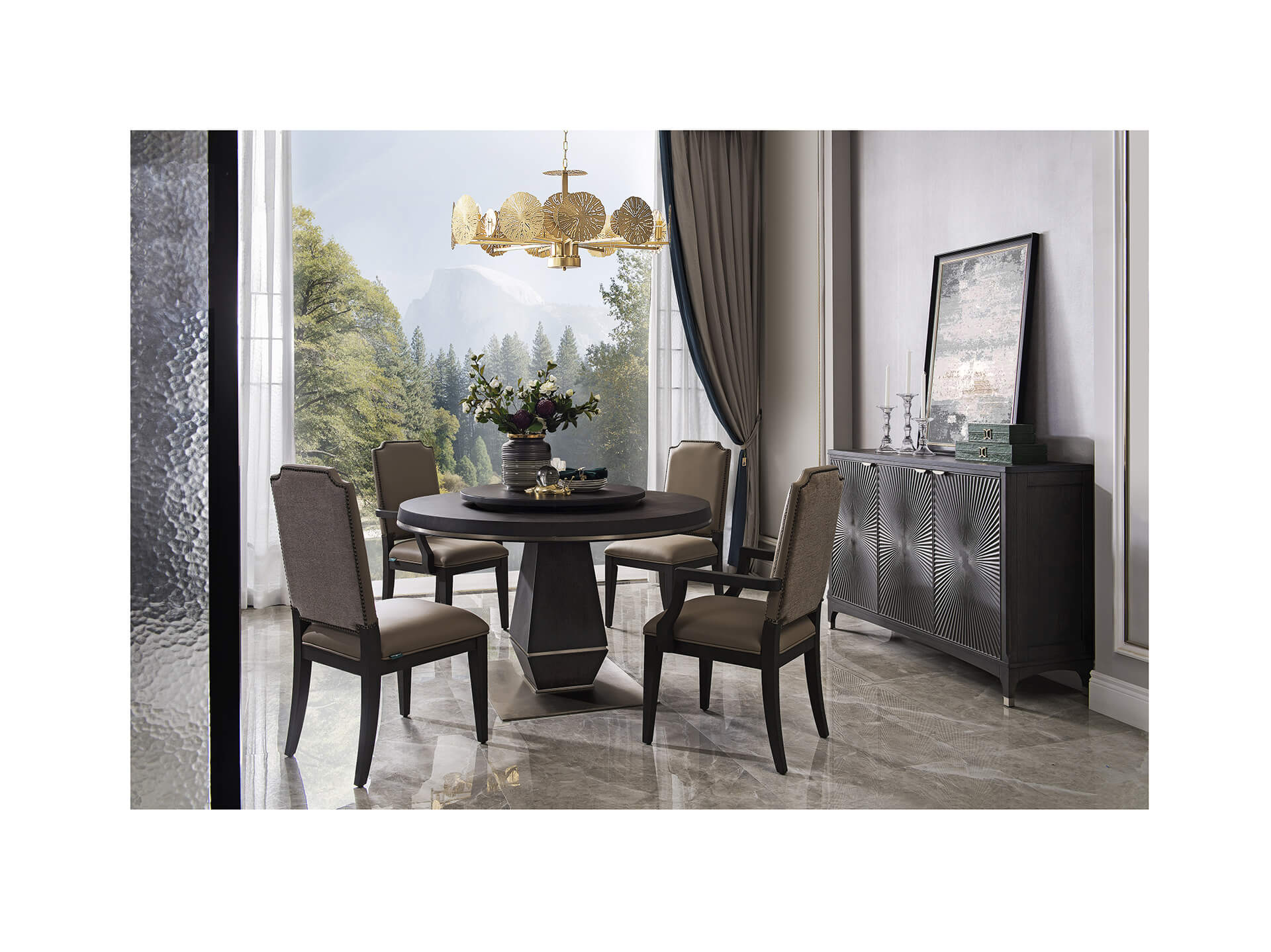 洛卡系列,以時尚美式為風(fēng)格定位,整體設(shè)計極為簡約,整體造型以直線為主,沒有過多繁復(fù)的結(jié)構(gòu)造型,可配性高,是美式風(fēng)格的代表。同時融入了許多輕奢的金屬元素與時尚幾何的元素,代表著對高品質(zhì)生活細節(jié)的追求。“輕”代表的是一種優(yōu)雅態(tài)度,低調(diào),舒適。洛卡系列在致力于新穎的設(shè)計的同時,更多地關(guān)注其細節(jié)和工藝,每一款家具的面料、工藝、材質(zhì)、工藝都做到極致。