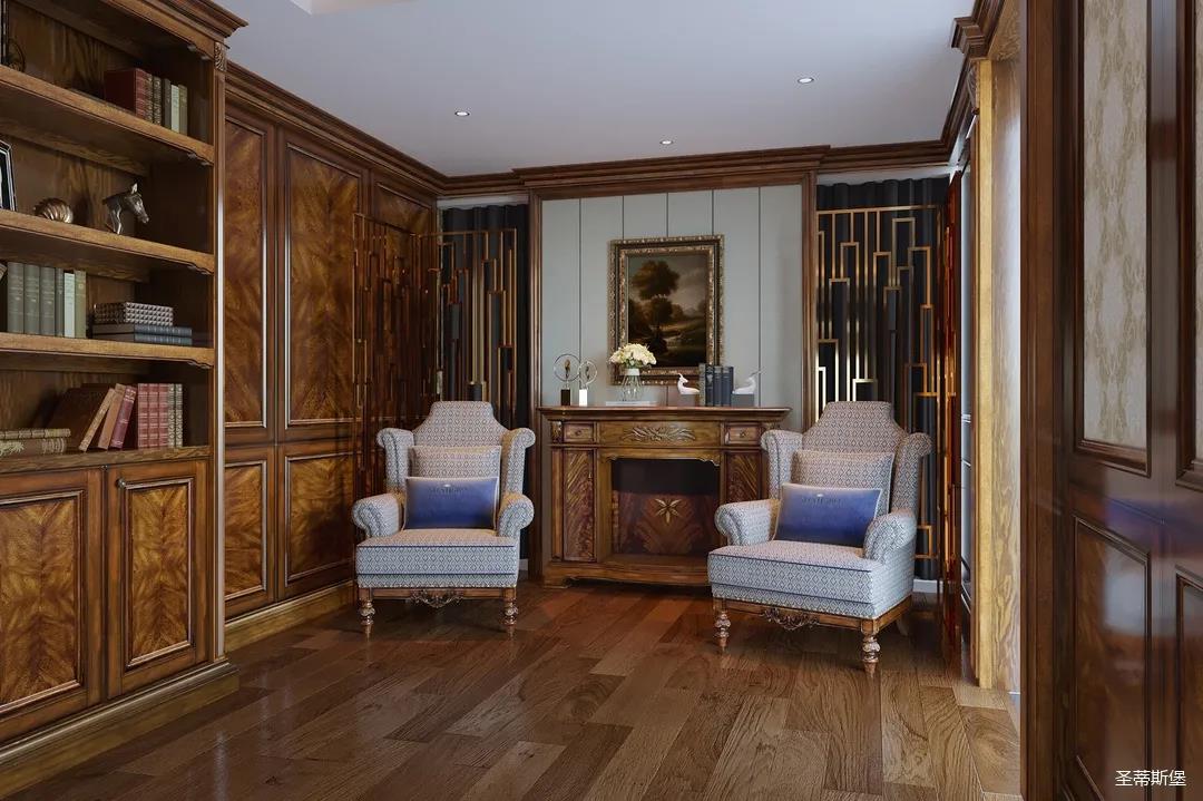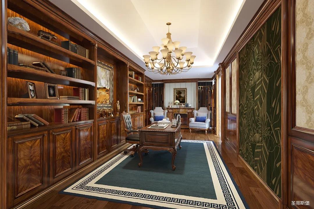 邁進(jìn)書房,仿佛就來(lái)到另一個(gè)清麗的世界,拋開(kāi)身后的塵囂,恍如隔世般撫慰著辛勞一天的身心。每一物件都經(jīng)過(guò)設(shè)計(jì)師的精雕細(xì)琢,不管是布藝的紋理,木質(zhì)的雕飾,亦或是真皮的質(zhì)感,都讓大美的豪華一目了然。粗狂中透著柔美的線條,渾厚復(fù)古的色調(diào),讓空間顯得深沉而含蓄,置身其中即可感受到傳統(tǒng)的歷史痕跡與渾厚的文化底蘊(yùn)。